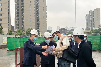 4月30日上午,紅谷灘新區區委書記吳江輝、區委常委、常務副區長仇海泉一行蒞臨華泰建設南水大廈項目部視察,區委辦、區衛建委、區應急局、消防救援大隊、區文廣新旅局、區商務局、區住建局、紅角洲管理處等領導班子及南水大廈項目負責人張光華和華泰建設項目經理曹曄陪同調研。