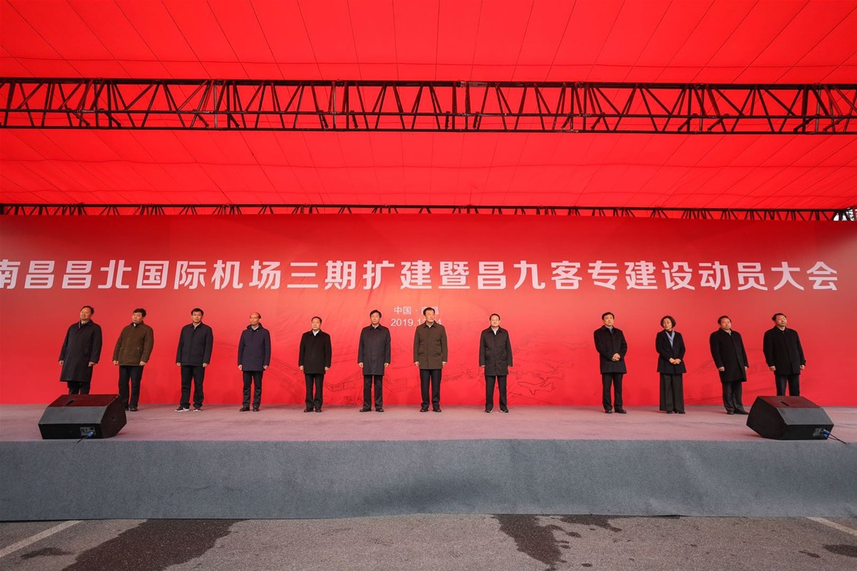 2019年12月24日,我司承建的昌北國際機場三期擴建項目暨昌九客專建設前期工程在昌北機場隆重召開動員大會,大會由偉明常務副省長主持,劉奇書記、煉紅省長蒞臨大會并致辭,美根書記、力平秘書長、曉軍、忠瓊副省長等領導一同出席大會。隆隆的飛機聲和著慷慨的陳詞為項目開工慶賀,大會在陣陣粗獷的汽笛聲和樁機聲中落下帷幕,我們定會牢記安全生產的使命時刻警惕危險,秉承魯班精神建設精品工程,文明施工樹立建筑業新標桿。
