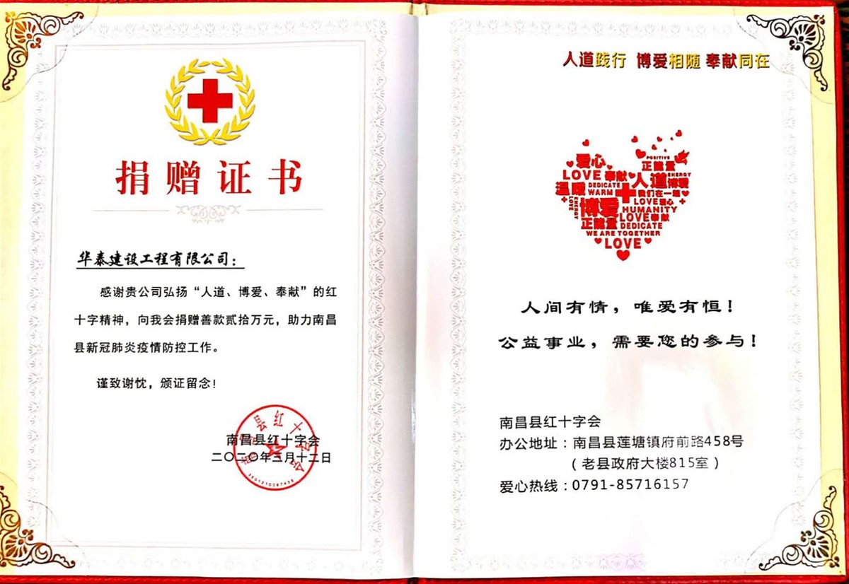 2月5日,我司向南昌縣紅十字會捐贈20萬元,幫助向塘鎮(zhèn)做好防疫工作。