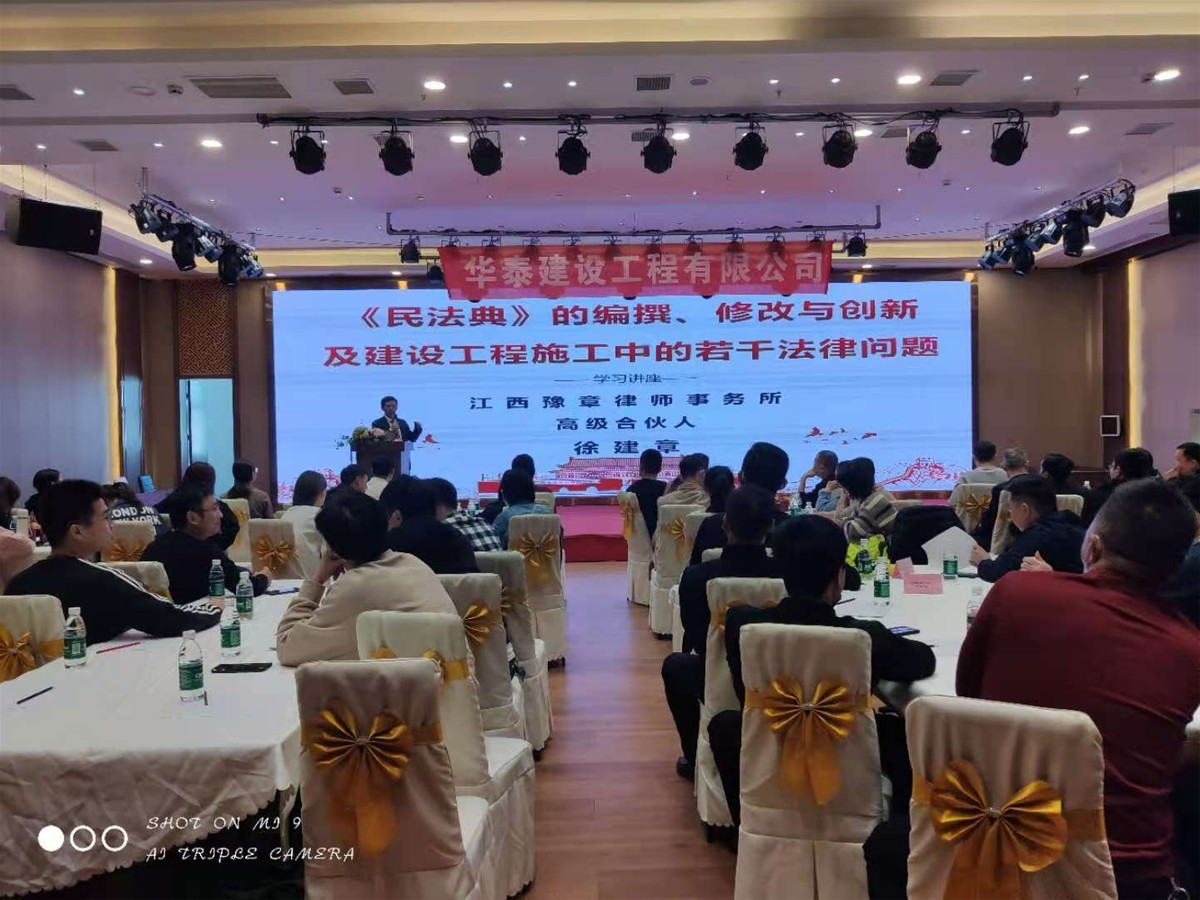 2020年11月14日我司組織本公司總部員工與各項目代表現(xiàn)場集中學(xué)習(xí)《民法典》,互相交流了學(xué)習(xí)心得。本次培訓(xùn)由江西豫章律師事務(wù)所徐建章律師主持,并為我司解答相關(guān)的法律疑問。