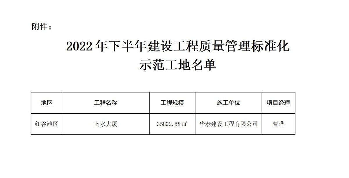 近日,在南昌市住房和城鄉建設局發布的《關于2022年下半年建設工程質量管理標準化示范工地的通告》、黃石市建筑業協會發布的《關于授予2022年度黃石市建設結構優質工程獎項目的通知》中,經各屬地工程質量監督部門推薦和專家評價,由華泰建設工程有限公司承建的“南水大廈”項目與“太陽城·檀悅府二標段1#、7#、8#樓”項目分別榮獲南昌市“2022年下半年建設工程質量管理標準化示范工地”、“黃石市2022年度建設工程銅都杯(結構優質工程)獎”。建設工程質量標準化示范工地評比是考核參建單位質量管理水平的重要標準之一,同時,建設工程銅都杯(結構優質工程獎)代表了建筑工程結構施工質量的高水平,也是精品工程的重要標志。獲此兩項殊榮,是對華泰建設項目施工水平及安全質量管理的充分肯定,彰顯了華泰建設在工程項目管理、工程品質等領域的卓越實力。
