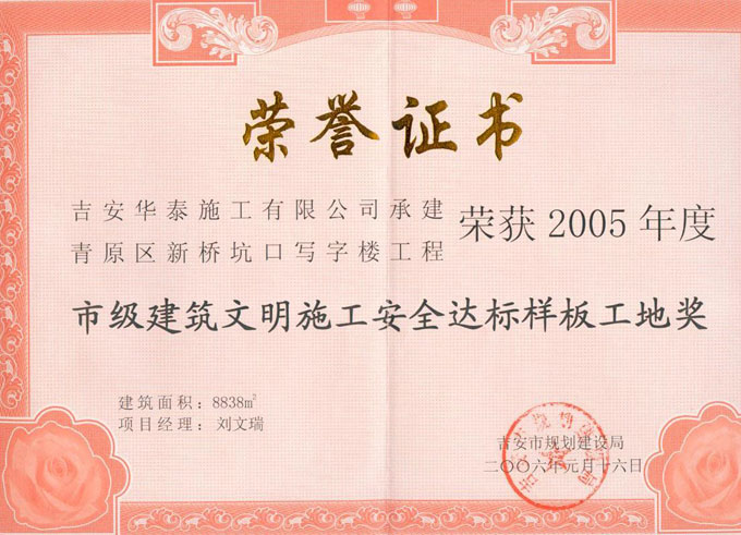 首頁 > 關于華泰 > 企業榮譽 > 青原區坑口寫字樓榮獲市級安全達標樣板工地獎